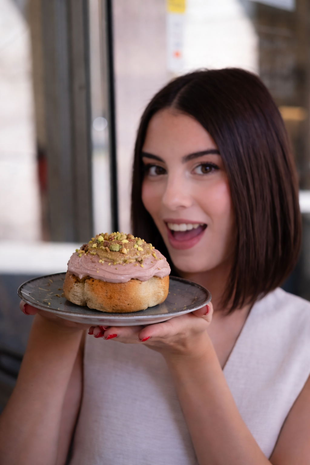 This roll is all about contrast and depth. The pistachio cream brings smooth richness, while tahini adds a subtle nutty edge that balances the sweetness. The kadayif gives a light crunch, creating a unique texture against the soft dough.